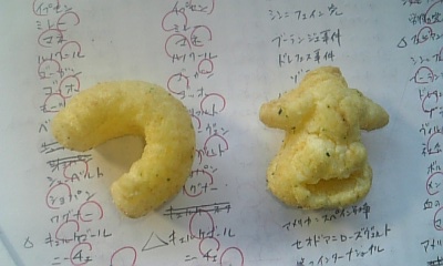 やっこさんのような形。なんか中のほう、凝縮したスナックでパッサンパッサンのモーパッサン。マズ!どうしてこんな形になっちゃったんだろうか?興味深い(笑)